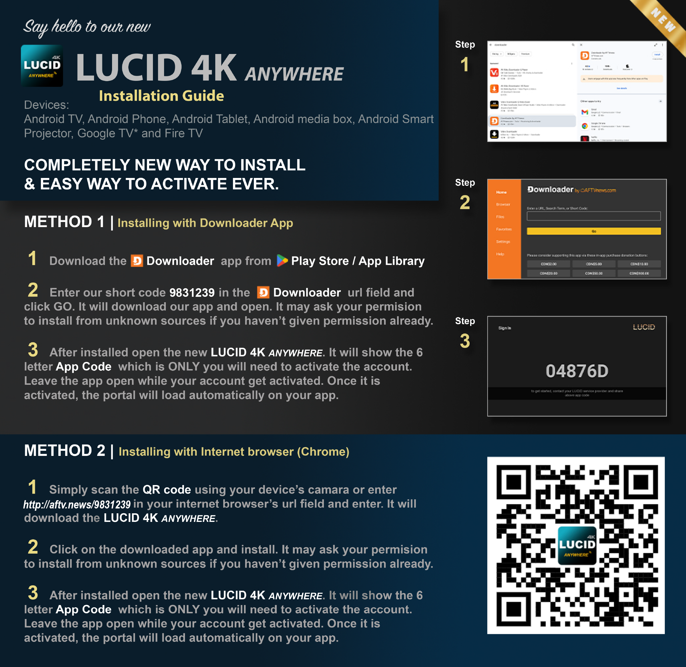 After installing the Smart-STB app, open the app and it will show a webpage address below a QR code. Go to that webpage to enter the portal url and for app registration etc.